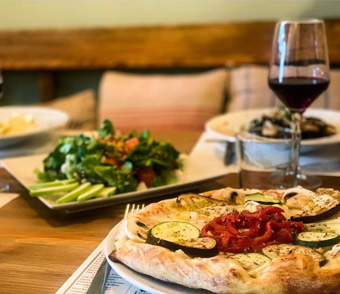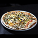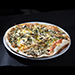 Queso de cabra, berenjena, champiñón, pimiento rojo,tomate, orégano y Mozzarella