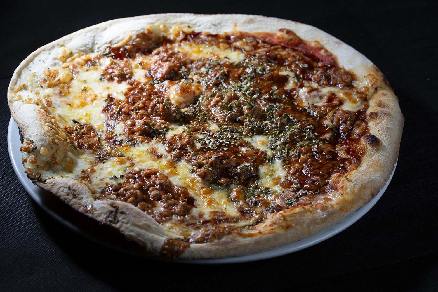 Salsa Barbacoa, carne, tomate, orégano y Mozzarella