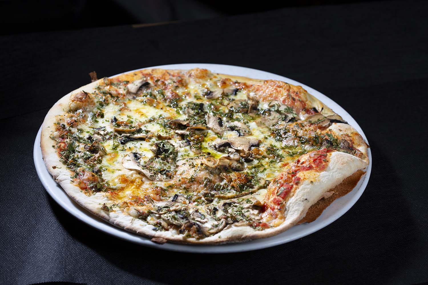Champiñón, ajo, peregil, tomate, orégano y Mozzarella